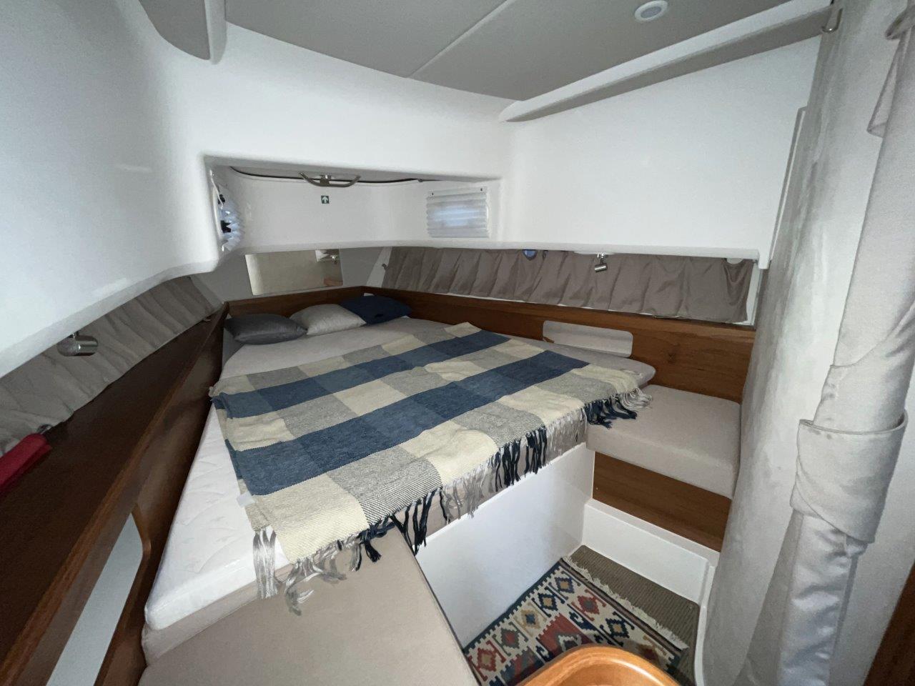 - Bow cabin with large double berth and extra mattress topper