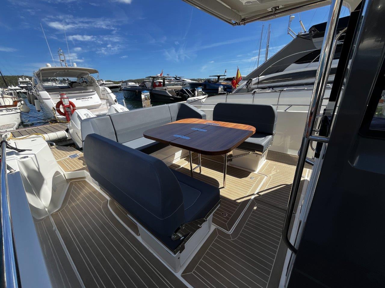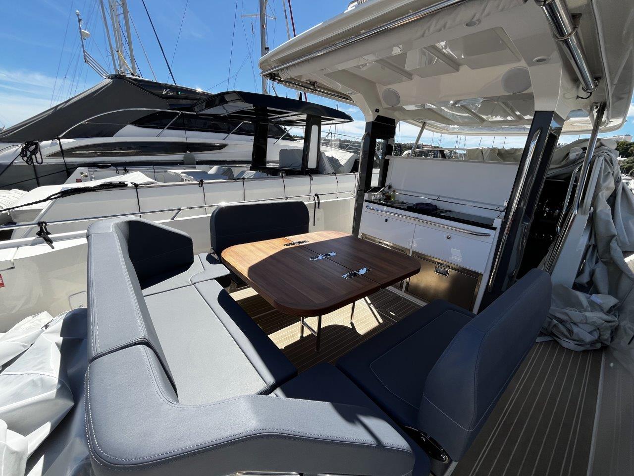 - Cockpit lounge / dining area with large table and multiple seating arrangements