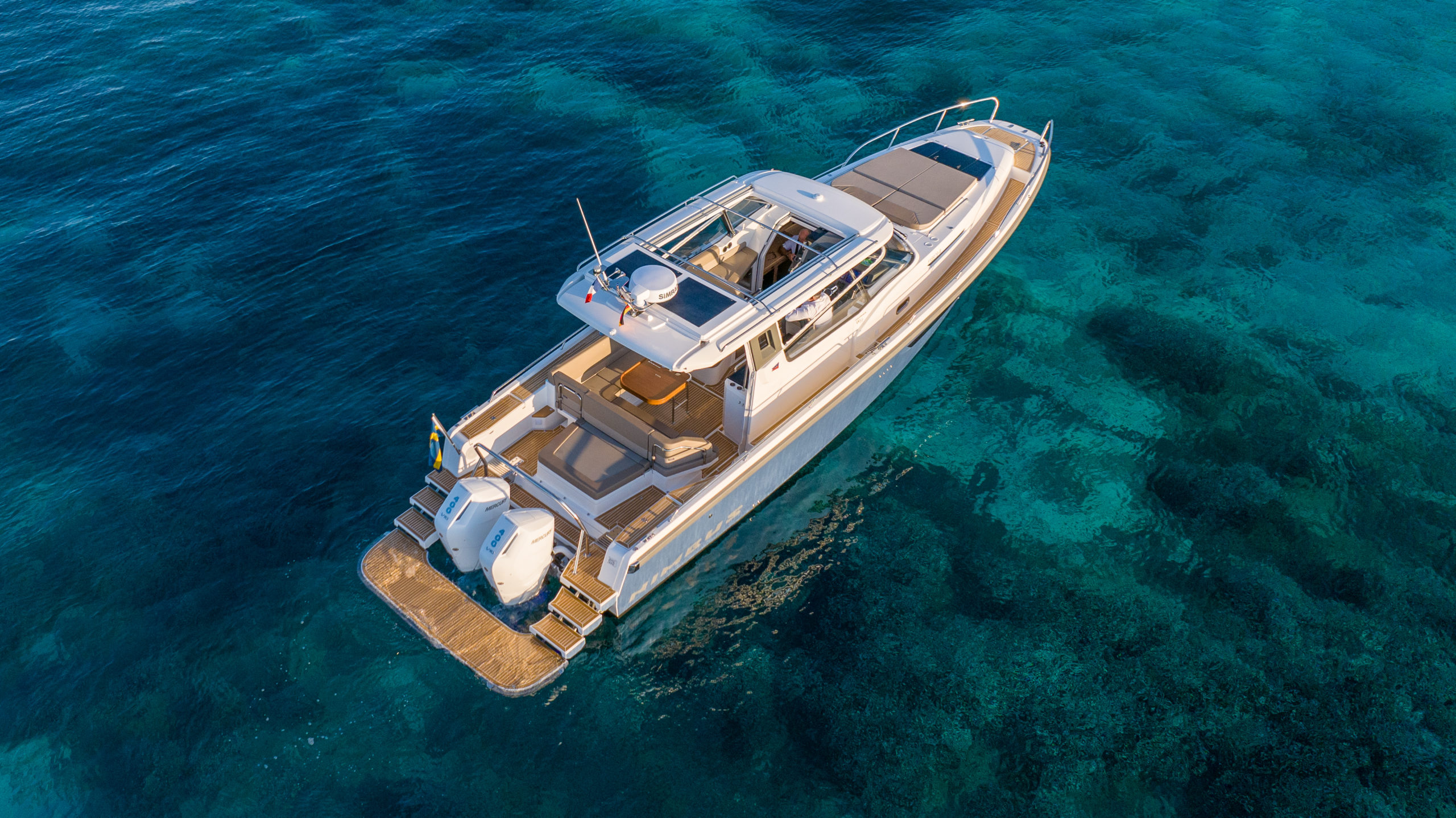 The W11 features the popular Nimbus sidewalk design, which provides ample interior space and easy and safe movement on deck. The layout and multifunctional seating arrangements are specially designed for social activities and entertaining, with the several large social areas perfect for hanging out with friends or family, relaxing, taking a swim or soaking up the sun on either the fore deck or aft deck. New features are the folding side balcony for added space and flexibility when anchored, and the optional hydraulic swim platform that extends aft of the engines allowing guests to be closer to the water and for super-easy boarding.